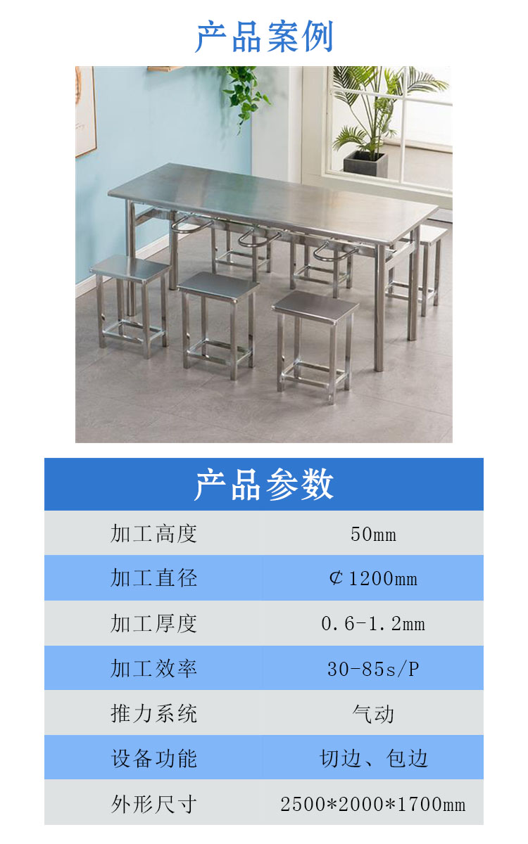 本文介紹的是異形切邊包邊機(jī)用于食堂餐桌椅加工設(shè)備,先把產(chǎn)品工件放入工作臺(tái),按一鍵啟動(dòng)后模具旋轉(zhuǎn),切邊功能座進(jìn)刀,跟隨模具旋轉(zhuǎn)施壓剪掉加工件的邊料,剪邊完成后包邊輪到達(dá)工件邊緣進(jìn)行包邊,最后取出加工后的產(chǎn)品工件。 (公司根據(jù)客戶需求,為客戶量身定制適合的設(shè)備,歡迎新老客戶咨詢了解)